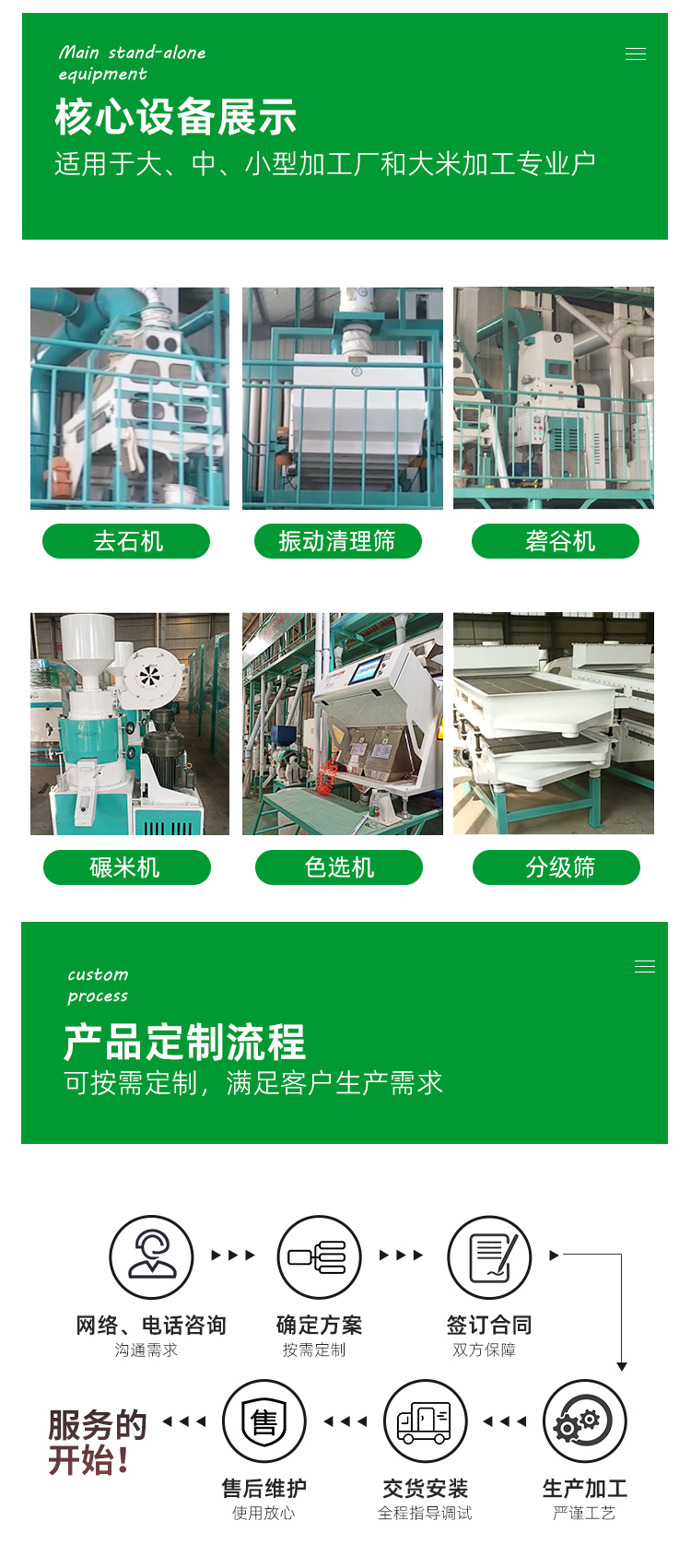 2、設備先進,本成套設備配備了我公司的**清理設備、**脫殼設備、新型碾磨設備以及大米**分級設備。這些新技術與設備的應用,使得設備具有出米率高,碎米率低且成品米金燦明亮。